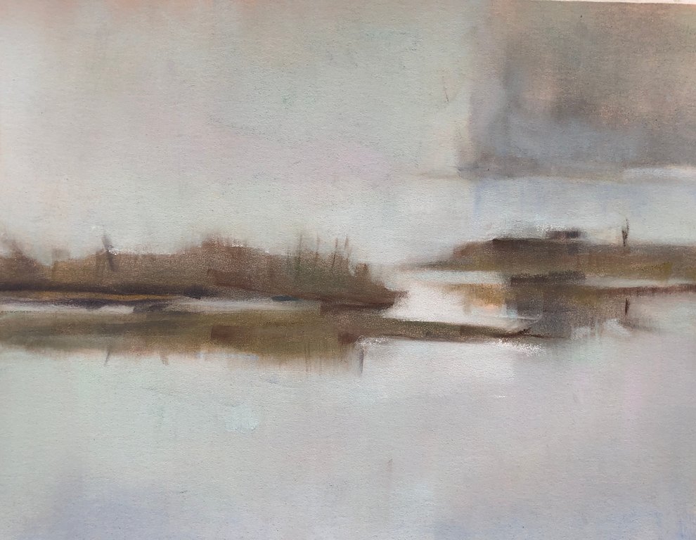 The Shoal Bay Estuary in morning fog/smoke from the wild fires raging all over the western U.S. I didn't have to even think twice about the title for this painting, which comes from a song lyric in the Musical "Hair" from the late 1960's. In fact, I was humming that one as I painted this. "Hello carbon monoxide" etc., etc. Giclee prints available at $200. The original painting is available on the awards & honors wall at Windswept Fine Art Gallery.