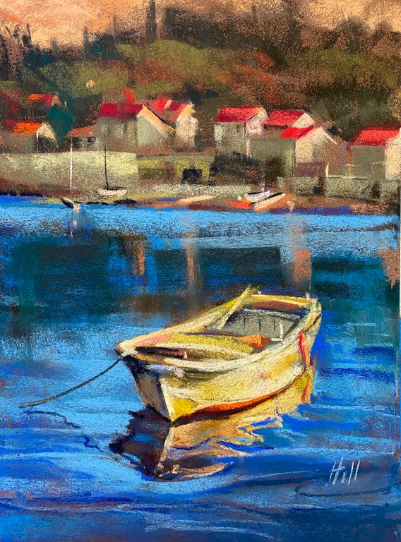 Colorful old wooden boats abound in Croatia, more than any other European country. This one moored in the bay at Lumbarda, on Korcula Island caught the last rays of warm sunlight and my eye as well.